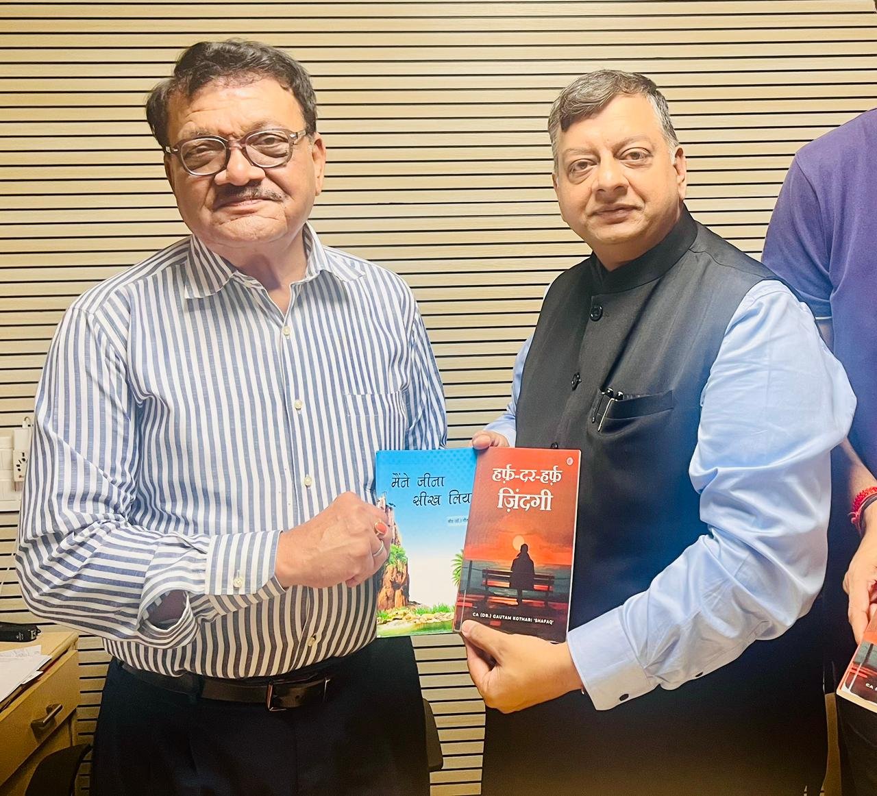 डॉ गौतम कोठारी जी ने डॉ भरत शर्मा का सम्मान स्वयंरचित पुस्तकें भेट स्मृतिचिह्न के रूप में भेट कर किया ।