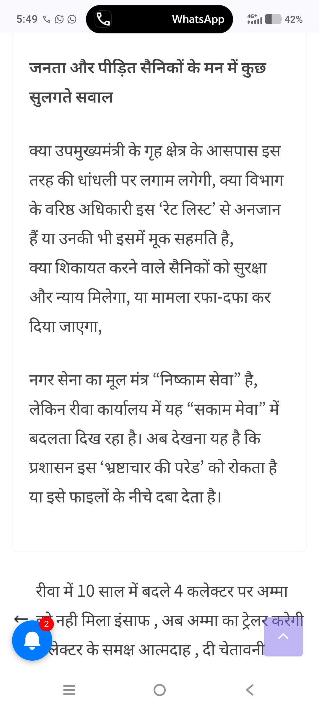 Rewa news: रीवा नगर सेना कार्यालय की चली खबर का खंडन