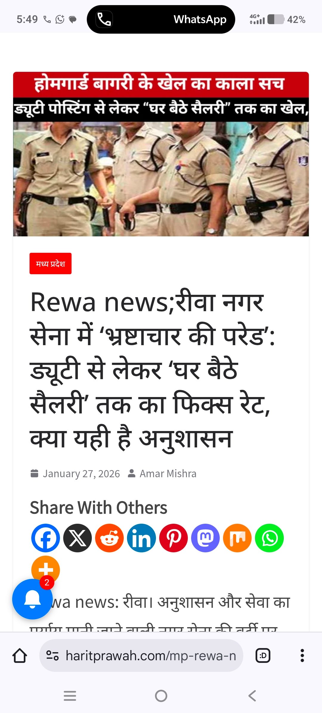 Rewa news: रीवा। पिछले कुछ दिनों से विभिन्न माध्यमों और सोशल मीडिया पर नगर सेना (होमगार्ड) रीवा के विरुद्ध प्रसारित की जा रही खबरें पूरी तरह निराधार, असत्य और विभाग की गरिमा को ठेस पहुँचाने वाली हैं। विभाग इन आरोपों को सिरे से खारिज करता है।