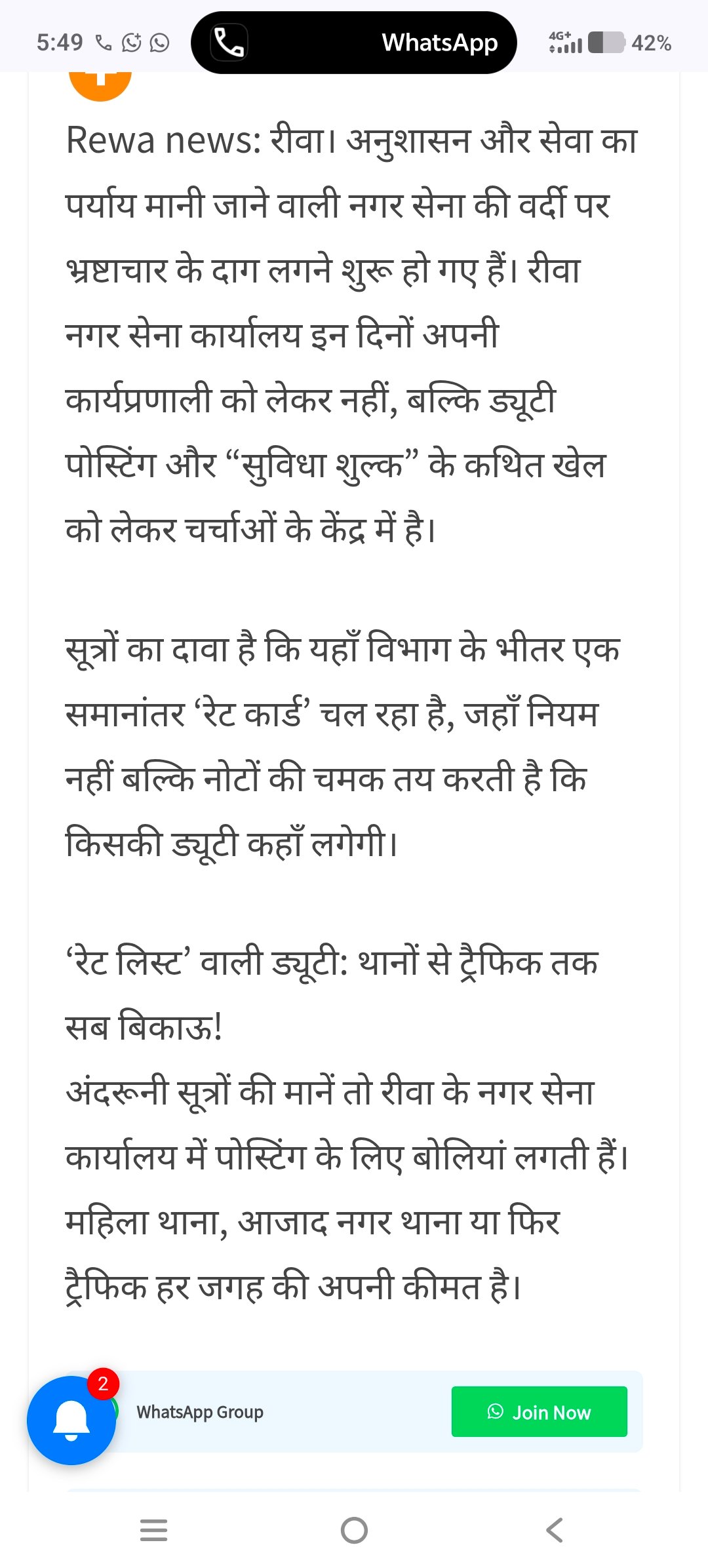 Rewa news: रीवा नगर सेना कार्यालय की चली खबर का खंडन