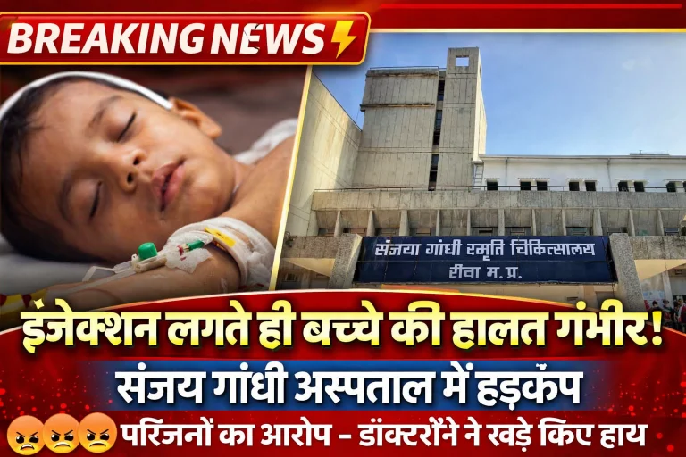 Share With OthersRewa news: रीवा जिले स्थित गांधी स्मारक चिकित्सालय में चिकित्सा लापरवाही का एक रोंगटे खड़े कर देने वाला … Continue reading Rewa news संजय गांधी अस्पताल पहुंचे बच्चे को लगा इंजेक्शन हालत गंभीर डॉक्टरों ने खड़े किए हाथ परिजनों में आक्रोश लगाया गंभीर आरोप