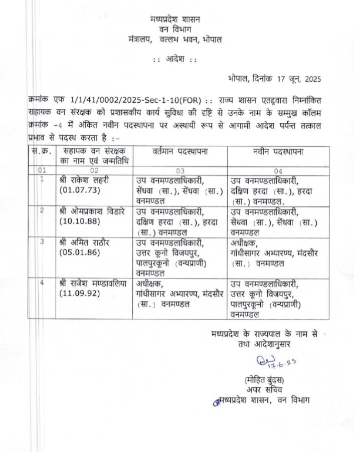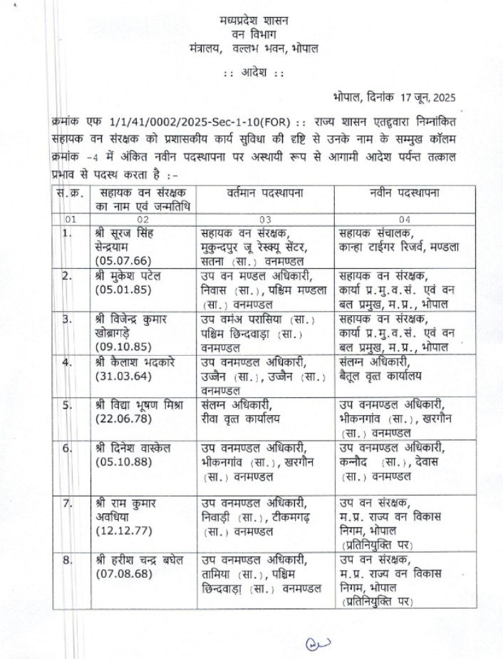 वन विभाग के अधिकारियों की ट्रांसफर लिस्ट